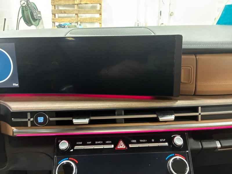- Radio: AM/FM/HD Bose Premium Audio System -inc: 12 speakers including subwoofer, external amplifier, 12.3" wide touchscreen, wireless Apple CarPlay and Android Auto, Bluetooth® hands-free w/wireless audio streaming, dynamic voice recognition, USB connectivity, SiriusXM, wifi hotspot, Blue Link connected car system, navigation system including traffic flow w/incident data via HD Radio (HERE), OTA updates and rear seat quiet mode