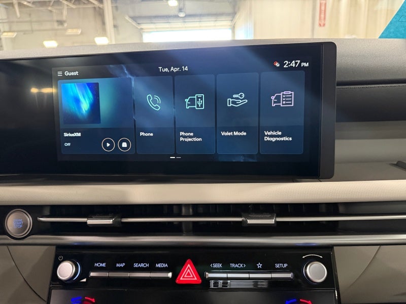 - Radio: AM/FM/HD Audio System -inc: 12.3" color touchscreen display, 6 speakers, SiriusXM satellite radio system (3-month trial subscription), wireless Apple CarPlay and Android Auto integration, controller OTA update capability, Blue Link connected car system and USB connectivity