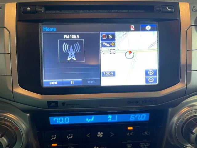 Heated Front Seats, Locking/Limited Slip Differential, Navigation System, Power Passenger Seat, Power Sunroof, Towing/Camper Pkg, Univ Garage Door Opener, W/o 3rd Row Seat, Perimeter alarm,Locking glove box,Outside temp gauge,Front map lights,Fade-to-off interior lighting,Driver information center,Full cloth headliner,Rear child safety locks,Deep tinted glass,Front fog lamps,Driver foot rest,Cruise control w/steering wheel controls,Day-night rearview mirror,Air filtration,Double wishbone front suspension w/coil springs,Rear cupholder,LED brakelights,Leatherette door trim insert,Steel spare wheel,Low tire pressure warning,Manual tilt/telescoping steering column,Back-up camera,Front And Rear Anti-Roll Bars,Fully Galvanized Steel Panels,Liftgate Rear Cargo Access,Front Cupholder,Carpet Floor Trim,Cargo Space Lights,Front Center Armrest And Rear Center Armrest,2 Seatback Storage Pockets,Side Impact Beams,Airbag Occupancy Sensor,Lip Spoiler,1 LCD Monitor In The Front,Perimeter/Approach Lights,Valet Function,Real-Time Traffic Display,HVAC -inc: Underseat Ducts And Console Ducts,Delayed Accessory Power,Dual Stage Driver And Passenger Seat-Mounted Side Airbags,Dual Stage Driver And Passenger Front Airbags,Outboard Front Lap And Shoulder Safety Belts -inc: Rear Center 3 Point, Height Adjusters and Pretensioners,Hydraulic Power-Assist Speed-Sensing Steering,Window Grid Diversity Antenna,Auto Locking Hubs,Full-Size Spare Tire Stored Underbody w/Crankdown,Driver And Passenger Knee Airbag,4-Way Passenger Seat,Variable Intermittent Wipers w/Heated Wiper Park,8-Way Driver Seat,5 12V DC Power Outlets,Transmission: Electronic 5-Speed Automatic w/OD,3.727 Axle Ratio,Engine: 4.0L V6 DOHC SMPI,GVWR: 6,300 lbs,72-Amp/Hr 750CCA Maintenance-Free Battery,23 Gal. Fuel Tank,4-Wheel Disc Brakes w/4-Wheel ABS, Front And Rear Vented Discs, Brake Assist, Hill Descent Control and Hill Hold Control,Driver And Passenger Visor Vanity Mirrors w/Driver And Passenger Illumination, Driver And Passenger Auxiliary Mirror,Instrument Panel Covered Bin, Driver / Passenger And Rear Door Bins,Manual Anti-Whiplash Adjustable Front Head Restraints and Manual Adjustable Rear Head Restraints,40-20-40 Folding Split-Bench Front Facing Manual Reclining Fold Forward Seatback Rear Seat,Entune Safety Connect Tracker System,Trailer Wiring Harness,Analog Appearance,Solid Axle Rear Suspension w/Coil Springs,Immobilizer,Full Floor Console w/Covered Storage, Mini Overhead Console w/Storage, 5 12V DC Power Outlets and 1 Interior 120V AC Power Outlet,5 12V DC Power Outlets and 1 Interior 120V AC Power Outlet,Power Rear Window w/Wiper and Defroster