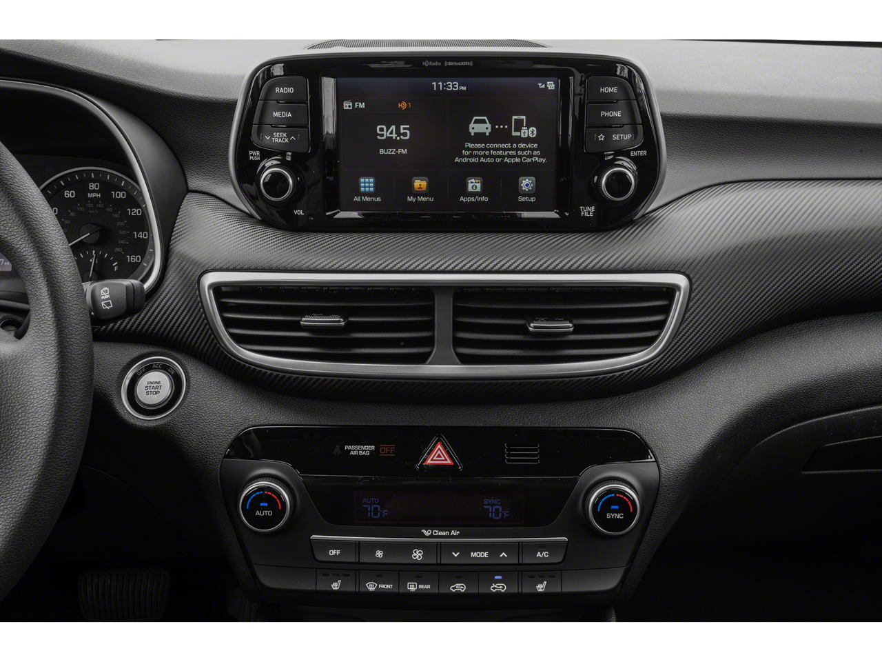 - Radio: AM/FM/SiriusXM Audio System -inc: 7" color touchscreen display audio, Apple CarPlay, Android Auto, 6 speakers, USB/AUX input jack, Bluetooth® hands-free phone system, HD Radio, VR and Blue Link connected car system