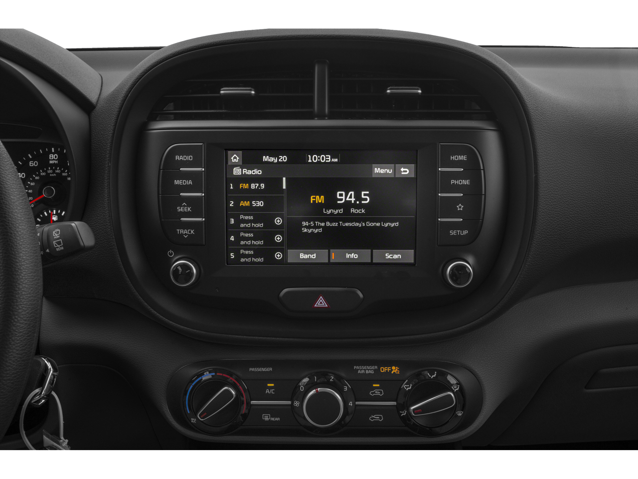 - Radio: AM/FM/MP3 Audio System -inc: 7.0" touch screen, 6 speakers, support for Android Auto and Apple CarPlay, USB input, audio remote control, Bluetooth® hands-free and black shark fine type antenna