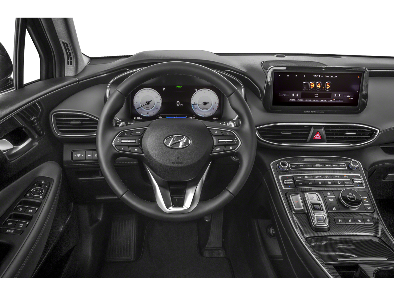 - Radio: AM/FM Harman Kardon Display Audio -inc: 10.25" display screen, Apple CarPlay and Android Auto, Bluetooth® hands-free w/wireless audio streaming, steering wheel audio and phone controls, dual front USB ports, SiriusXM, HD Radio, Blue Link connected car system, 12 speakers including subwoofer, external amplifier, Clari-Fi music restoration technology, QuantumLogic surround, navigation system w/traffic flow including incident data via HD Radio (HERE), rear seat quiet mode and wireless device charging