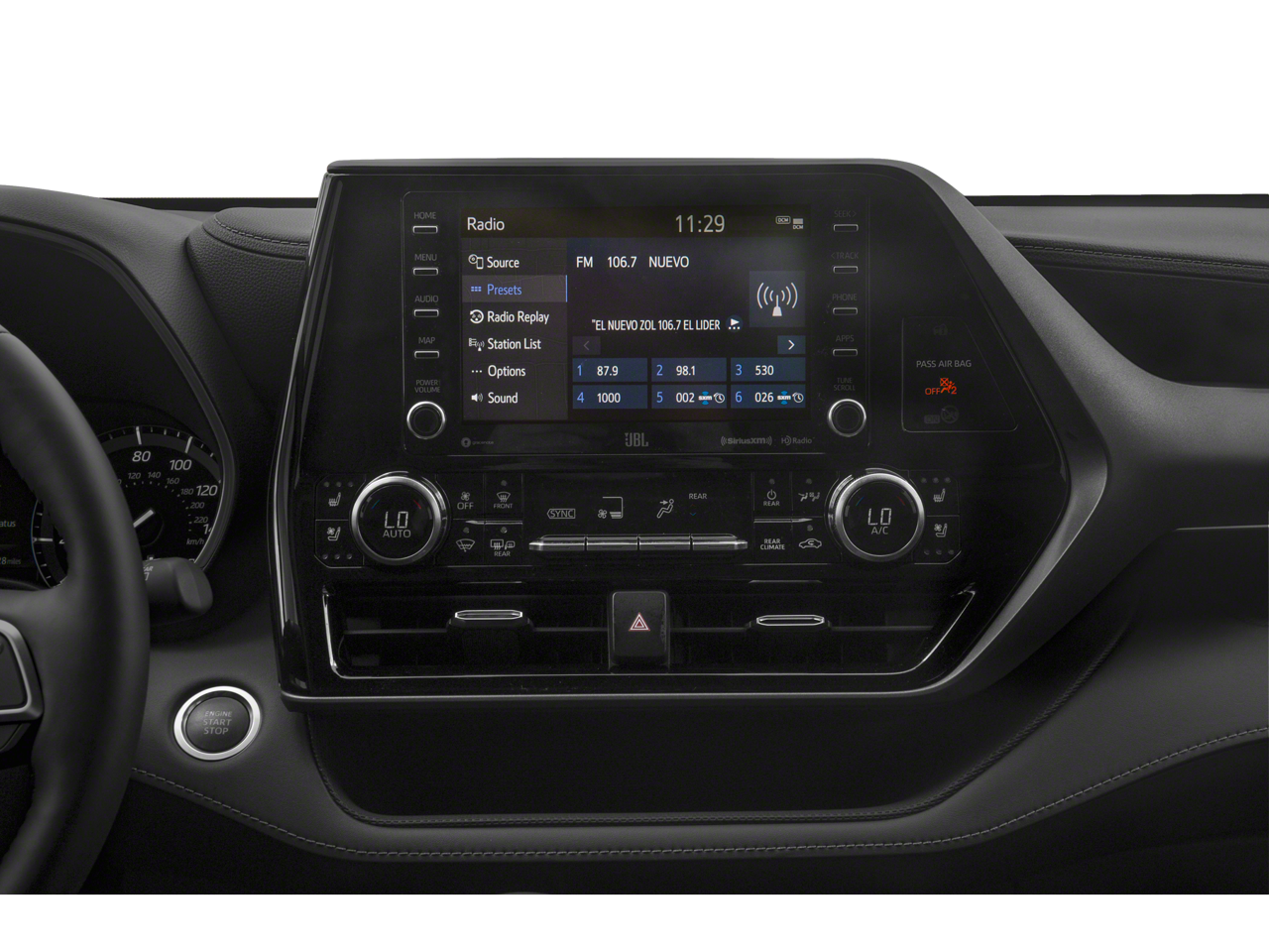 - Radio: Premium Audio w/JBL Clari-Fi -inc: 11 speakers, subwoofer, amplifier, 8" touch-screen, HD Radio, USB media port, hands-free phone capability, dynamic navigation w/up to 3-year trial, dynamic POI search, dynamic voice recognition and music streaming via Bluetooth wireless technology, Android Auto, Apple CarPlay and Amazon Alexa compatible, SiriusXM w/3-month Platinum Plan trial subscription, Connected Services - Safety Connect w/1-year trial, Service Connect w/10-year trial, Remote Connect w/1-year trial, Wi-Fi Connect w/up to 2GB within 3-month trial and Destination Assist w/1-year trial, See Toyota.com/audio-multimedia for details