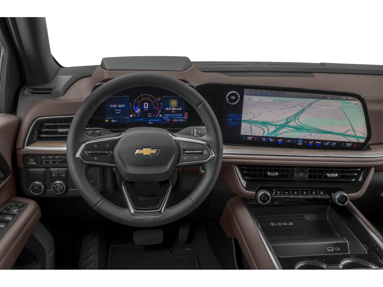 6.2L V8 Engine, Adaptive Air Suspension, EMISSIONS, COLORADO, CONNECTICUT, DELAWARE, MAINE, MARYLAND, MASSACHUSETTS, MINNESOTA, NEVADA, NEW JERSEY, NEW YORK, OREGON, PENNSYLVANIA, RHODE ISLAND, VERMONT, VIRGINIA AND WASHINGTON STATE REQUIREMENTS, ENGINE, 6.2L ECOTEC3 V8, Fixed Running Boards, Heads-Up Display, HIGH COUNTRY PREFERRED EQUIPMENT GROUP, JET BLACK/MOCHA, PERFORATED LEATHER SEATING SURFACES, LAKESHORE BLUE METALLIC, LICENSE PLATE FRONT MOUNTING PACKAGE, LPO, ALL-WEATHER FLOOR LINERS, 1ST AND 2ND ROWS, LPO, WHEEL LOCKS, SET OF 4, Magnetic Ride Control, Max Trailering Pkg., Panoramic Power Sunroof, REAR AXLE, 3.23 RATIO, Rear Bucket Seats, TIRES, 275/50R22SL ALL-SEASON, BLACKWALL, Univ Garage Door Opener, 4-wheel drive,Remote start,Cargo management system,Trailer sway control,Glass, acoustic, laminated,Defogger, rear-window electric,Visors, driver and front passenger illuminated vanity mirrors, sliding,Steering column, power tilt and telescopic,Floor covering, color-keyed carpeting,Seat adjuster, driver 8-way power,Suspension, front coil-over-shock with stabilizer bar,Suspension, rear multi-link with coil springs,Lighting, interior with dome light, driver- and passenger-side door switch with delayed entry feature, cargo lights, door handle or Remote Keyless Entry-activated illuminated entry and map lights in front and second seat positions,Tire carrier, lockable outside spare, winch-type mounted under frame at rear,Universal Home Remote includes garage door opener, programmable,Cooling, auxiliary transmission oil cooler, heavy-duty air-to-oil,Seat adjuster, front passenger 8-way power,Seat adjuster, driver 4-way power lumbar,Seat adjuster, front passenger 4-way power lumbar,Hill start assist,Windshield, solar absorbing,Mechanical jack with tools,Glass, deep-tinted (all windows, except light-tinted glass on windshield and driver- and front passenger-side glass),Rear axle, 3.23 ratio,Safety Alert Seat,Door handles, chrome with body-color strip,Keyless start, push button,Mirror caps, body-color,Glass, windshield shade band,Automatic Stop/Start,Rear seat reminder,Seats, heated second row outboard seats,Door locks, rear child security, manual,IntelliBeam, automatic high beam on/off,Seats, third row 60/40 split-bench, power folding,Rear Camera Washer,Airbags, Frontal airbags for driver and front outboard passenger; Seat-mounted side-impact airbags for driver and front outboard passenger; Driver inboard seat-mounted side-impact airbag; Head-curtain airbags for all rows in outboard seating positions (Always use seat belts and child restraints. Chi,Front outboard Passenger Sensing System for frontal outboard passenger airbag (Always use seat belts and child restraints. Children are safer when properly secured in a rear seat in the appropriate child restraint. See the Owner's Manual for more information.),Brakes, 4-wheel antilock, 4-wheel disc with DURALIFE rotors,Reverse Automatic Braking,Chevrolet Connected Access capable (Subject to terms. See onstar.com or dealer for details.),LATCH System (Lower Anchors and Tethers for CHildren), for child restraint seats lower anchors and top tethers located in all second-row seating positions, top tethers located in third row seating positions,Rear Pedestrian Alert,Teen Driver a configurable feature that lets you activate customizable vehicle settings associated with a key fob, to help encourage safe driving behavior. It can limit certain available vehicle features, and it prevents certain safety systems from being turned off. An in-vehicle report card gives y,Engine air filtration monitor,Differential, mechanical limited-slip,Engine control, stop/start system disable button, non-latching,Trailering equipment includes trailering hitch platform, 7-wire harness with independent fused trailering circuits mated to a 7-way connector and 2" trailering receiver,Hitch Guidance,Fascia, front,Mirrors, outside heated power-adjustable, power-folding, driver-side auto-dimming integrated turn signal indicators and puddle lighting,Audio system feature, Bose 10-speaker Surround with CenterPoint,Electronic Precision Shift,Assist handles, overhead, driver and front passenger, located in headliner,Tire Pressure Monitoring System auto learn, includes Tire Fill Alert (does not apply to spare tire),Warning tones headlamp on, driver and right-front passenger seat belt unfasten and turn signal on,Engine, 6.2L EcoTec3 V8 with Dynamic Fuel Management, Direct Injection and Variable Valve Timing, includes aluminum block construction (420 hp [313 kW] @ 5600 rpm, 460 lb-ft of torque [624 Nm] @ 4100 rpm),Exhaust, dual system with dual twin polished stainless-steel tips,Fog lamps, front LED,Rear Cross Traffic Braking